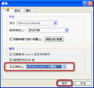 而若要徹底刪除檔案,請先按下選項,並將安全刪除設到〔3次〕以上。
