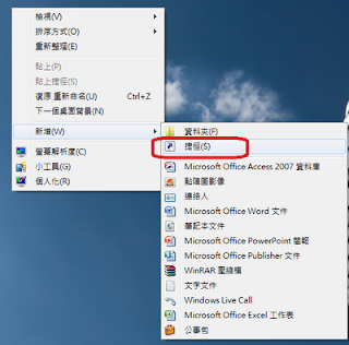 - 滑鼠在桌面上按右鍵 "新增/捷徑".